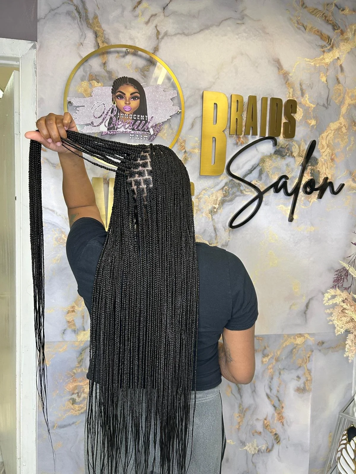 Innocent Beauty Hair is a hair braids, weaves, and wigs salon in Aurora, Colorado, serving clients across Denver and the surrounding Colorado area with expert styling and premium hair solutions. We specialize in luxury Bohemian BraidS/Twists, Bora Bora Braids, French Curl Knotless, Design Stitch for Men and Women. Locs Start up and Re twist, Wig Installations, Lace and Leave out Sew in Weaves and much more. Because we Care about your investment, we work hard to provide you with the right quality hair essentials that will help you take care of your natural hair and protect the longevity of investment. Our collectionds is rich of 100% virgin and raw human hair extensions, complemented by our exclusive line of natural Ayurvedic hair growth oils, butters, and professional styling products. Known for quality, consistency, and a luxury experience, Innocent Beauty Hair is the go-to destination for women searching for top-rated braids, weaves, wigs, and premium hair products near them.